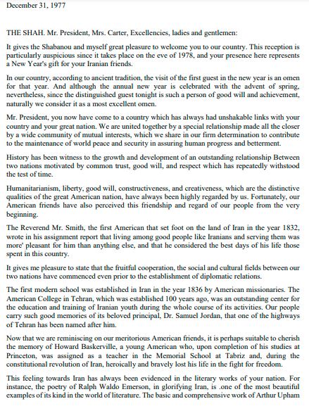 The Shah’s Speech to President Carter, 1977